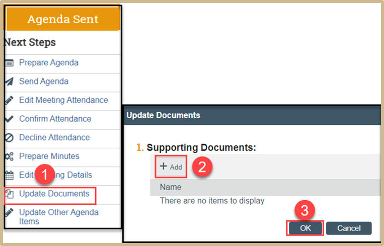 Click on Update Documents. Add any supporting documents needed. Once finished, click OK.