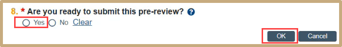 Select Yes once you are ready to submit the pre-review and then click OK to finish.
