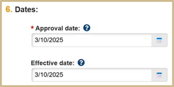 Approval Date: The date the IRB decision was made. If you are submitting a committee review, the date defaults to the day of the meeting. It must be set to the day the committee made the decision, not the day the decision is recorded.