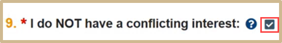Checkmark the box stating that you do NOT have a conflicting interest.