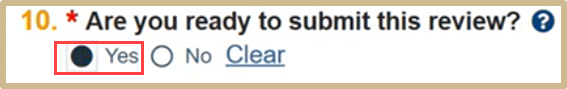 - No: Enables you to return and finish the review at another time (by clicking the activity again).
